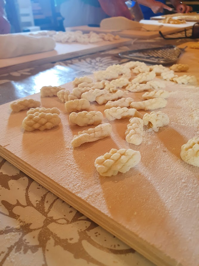 Im Agriturismo Lu Rotu im Hinterland der Insel begrüßen Sie heute Maria und ihre Tochter Giampiera. Gemeinsam ernten Sie im familieneigenen Garten frisches Gemüse und Kräuter für Ihr Mittagessen. In der gemütlichen Küche Ihrer Gastgeber erklären die beiden Frauen Ihnen, wie Chiusoni, eine traditionell sardische Pasta, hergestellt werden. Probieren Sie Ihr Glück und kreieren Sie die kleinen zylinderförmigen Nudeln selbst. Nach der Arbeit kommt das Vergnügen, und beim anschließenden Mittagessen unter schattenspendenden Bäumen werden Sie die sardische Spezialität kosten können. Dazu werden typische Antipasti gereicht. Buon appetito! (F/M)