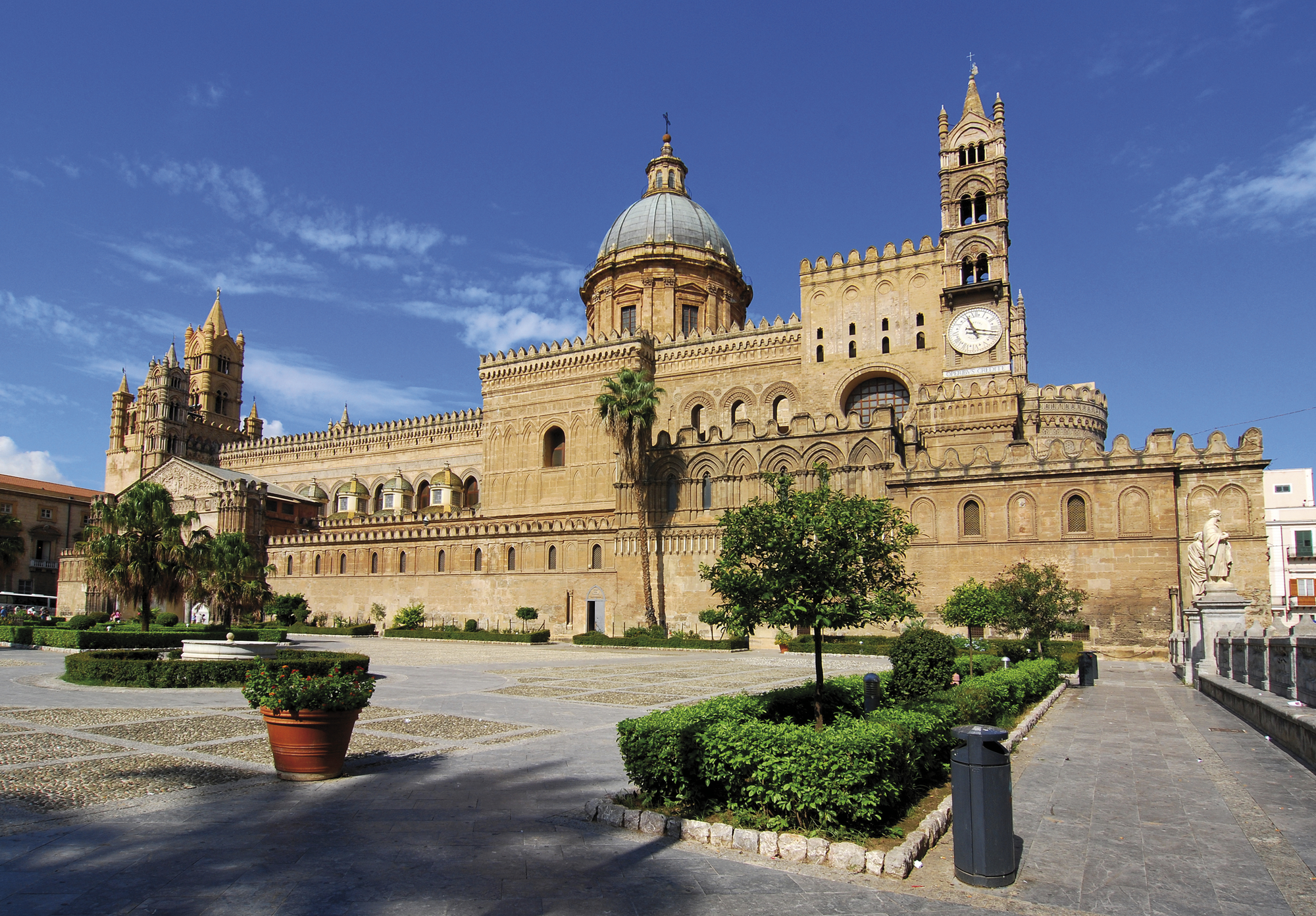 Fahrt in Richtung Palermo. Außerhalb der kulturellen Hauptstadt Siziliens haben wir die Möglichkeit einen der bedeutendsten Sakralbauten des Mittelalters, den Dom von Monreale, zu besichtigen. Bekannt ist dieses UNESCO-Weltkulturerbe für seine byzantinischen Mosaike und seinen Kreuzgang. Anschließend Weiterfahrt in die lebensfrohe Hafenmetropole Palermo. Wir haben Tickets für eine Hop-On/Hop-Off Stadtrundfahrt, bei der wir die palatinische Kapelle im Normannenpalast, die Kathedrale mit den Königsgräbern, den Quattro Canti, die Martorana-Kirche sowie die Piazza Vigliena kennenlernen. Begeistert sind wir von den prunkvollen Palästen und eindrucksvollen Monumenten aus der Kultur der Araber, Normannen und Hohenstaufen. Anschließend fahren wir mit dem Mietwagen weiter in Richtung Cammarata. Auf dem Weg können wir in Corleone, das durch den Roman „Der Pate“ von Mario Puzo Weltruhm erlangte, oder in Prizzi einen Stopp einlegen (Tagesdistanz ca. 250 km).